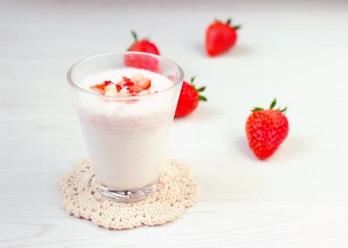 做法:首先将草莓洗干净之后放入榨汁机中,加入适量的牛奶以及蜂蜜,最后成果汁就可以服用了。